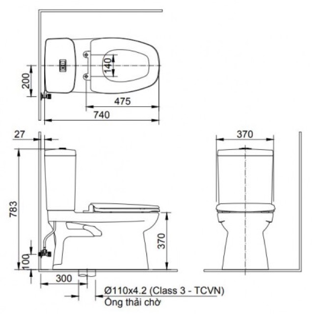 - Kiểu xả Siphon dạng nhấn 2 mức: 5.5L/3.0L