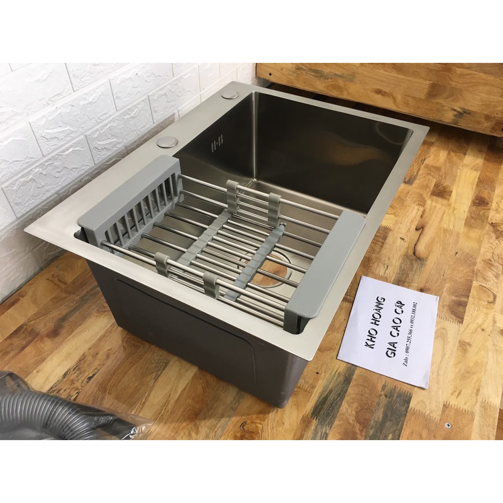 Bồn rửa bát (chén) chậu rửa chén inox 304 Size 60x45cm Tằng kèm xi phông và rổ đa năng