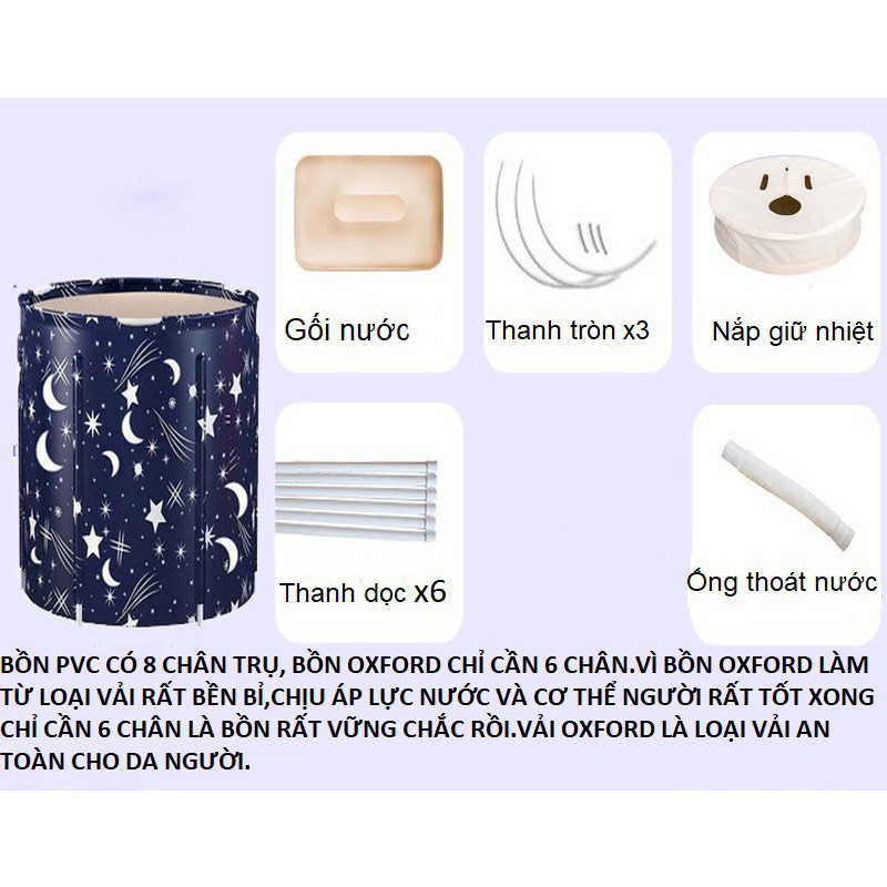 Giới thiệu Bồn tắm gấp gọn cho người lớn 6 lớp, làm từ vải Oxford , chống thấm 166A