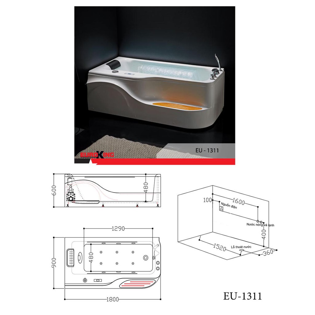Giới thiệu Bồn tắm massage cao cấp Euroking, bao vận chuyển và lắp đặt