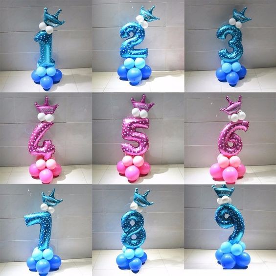 Bóng bay số tuổi tặng kèm vương miện (chọn màu)set gồm: 1 số tuổi kèm 1 vương miện + 15 quả bóng tròn màu trắng xanh hoặc trắng hồng