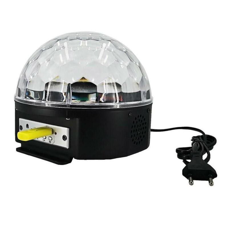 Hình dạng giống quả cầu bán nguyệt. Là một sản phẩm độc đáo 2 trong một: Vừa là đèn led trình chiếu đủ màu sắc, vừa là dàn âm thanh sôi động có điều khiển từ xa.Với thiết kế hình cầu nhỏ xinh, ánh sáng phát ra đủ màu sắc, đèn cầu led 7 màu sẽ làm bạn thật sự ngạc nhiên vì có thể tạo ra một không gian không khác gì quán bar hay như một quán karaoke thu nhỏ.