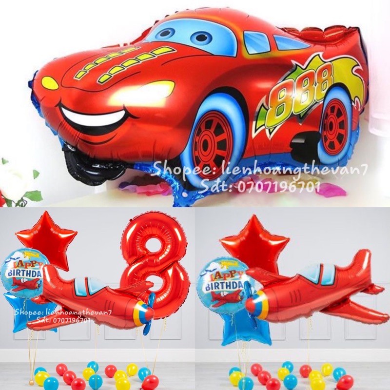 Nhà cửa & Đời sống > Trang trí nhà cửa > Khác || Bóng nhôm hình xe đua Mc Queen, máy bay đỏ (size lớn)Còn hàng