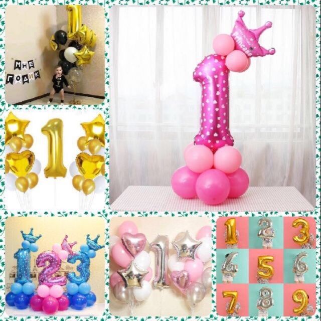 Bóng số 1 ( màu hồng, xanh, vàng gold, bạc) size 30cm & 70cm.Bong bóng trang trí Vân
