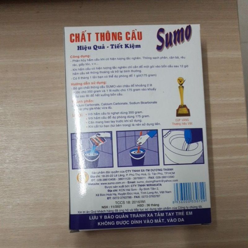 Bột thông cống Sumo dạng hộp 175gBột thông c Sumo 175g giúp phân hủy các chất hữu cơ thối rữa tính tụ lâu ngày trong bể phốt từ chất thải, thức ăn dư thừa, giấy vệ sinh trong quá trình sử dụng của con người.