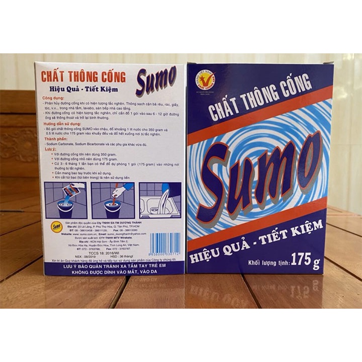 - Chất thông cầu Sumo 175g có thành phần bao gồm sodium hydroxide và các phụ gia khác vừa đủ, được sản xuất và đóng gói trên dây chuyền hiện đại, không chất hóa học độc hại ảnh hưởng đến sức khỏe con người, thân thiện với môi trường.