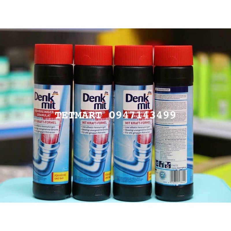 Giới thiệu Bột thông cống Đức Denkmit 600g Rohrreiniger Granulat