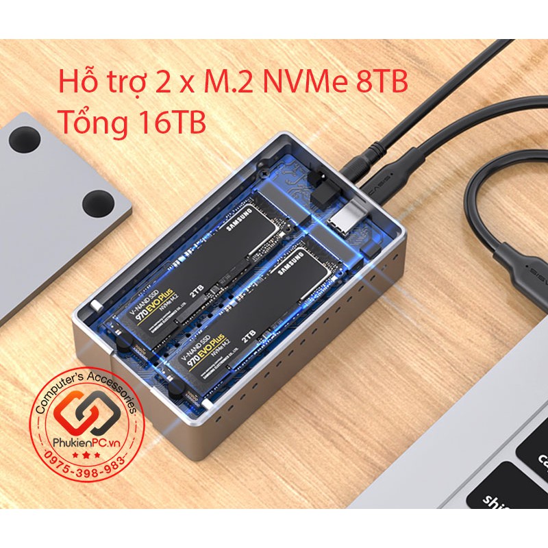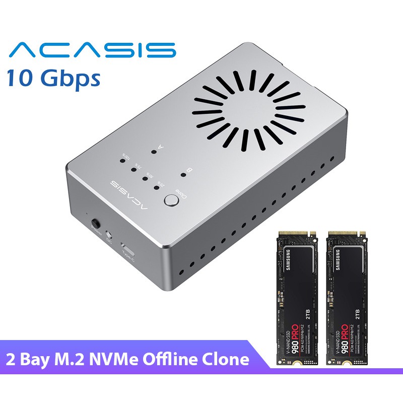 Hiện nay, ổ cứng SSD M.2 NVMe PCIe rất phổ biến và giá cả phải chăng. SSD M.2 NVMe thiết bị thường phải có khi bạn xây dự cấu hình máy tính. Hầu hết các dòng Box, hộp đựng ổ cứng M2 NVMe hiện nay chỉ hỗ trợ 1 SSD M2 NVMe, bạn cần đọc 2 ổ cùng một lúc, hay nhân bản 2 ổ cứng M2 NVMe để toàn vẹn dữ liệu? Bạn cần thiết bị gì.Box ACASIS M10 đọc cùng một lúc 2 ổ cứng NVMe, hỗ trợ 8TB/ 1 khe cắm. Tổng tối đa bạn đọc được 16Tb SSD M2 NVMe. Sử dụng chipset mới nhất hãng ASMedia, tốc độ 10GB