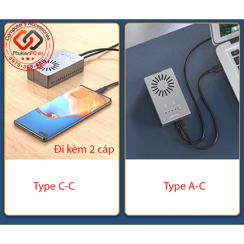 Đóng gói: Thân sản phẩm, cáp type a sang type-c, cáp type-c sang type c, nguồn 5V