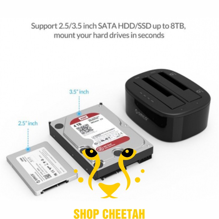 - Giao diện SATA có thể giúp HDD Dock Orico 2.5/3.5 inch USB3.0 Dual-bay 6228US3 hoạt động tốt bất chấp các loại HDD gay SDD khác nhau, thật tuyệt vời cho người sử dụng.