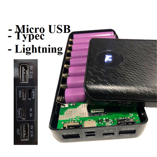 Box sạc dự phòng chân cắm Type c sạc siêu nhanh 8 cell dùng pin 18650, mạch sạc nhanh 2a chưa pin