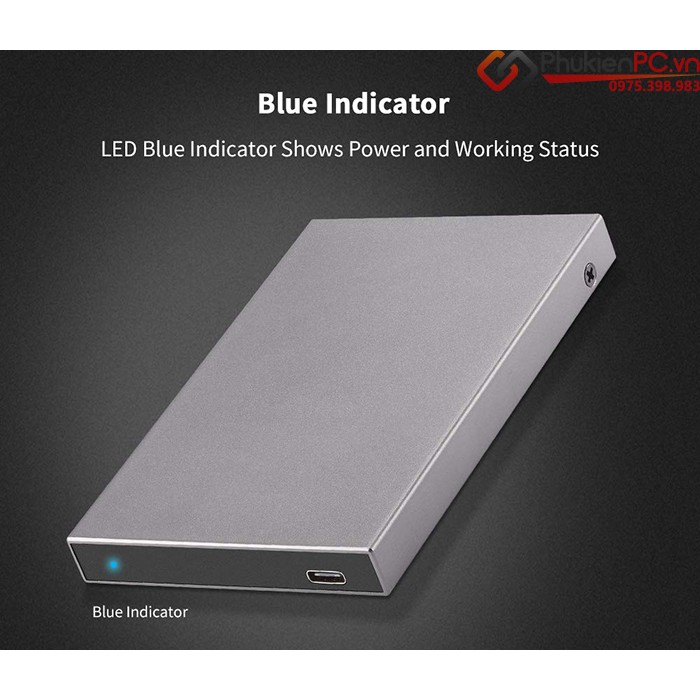 Box ổ cứng HDD, SSD Type-C (USB-C) biến ổ cứng SSD SATA thành ổ cứng di động.- Thiết kế vỏ nhôm cứng cáp, mạnh mẽ.