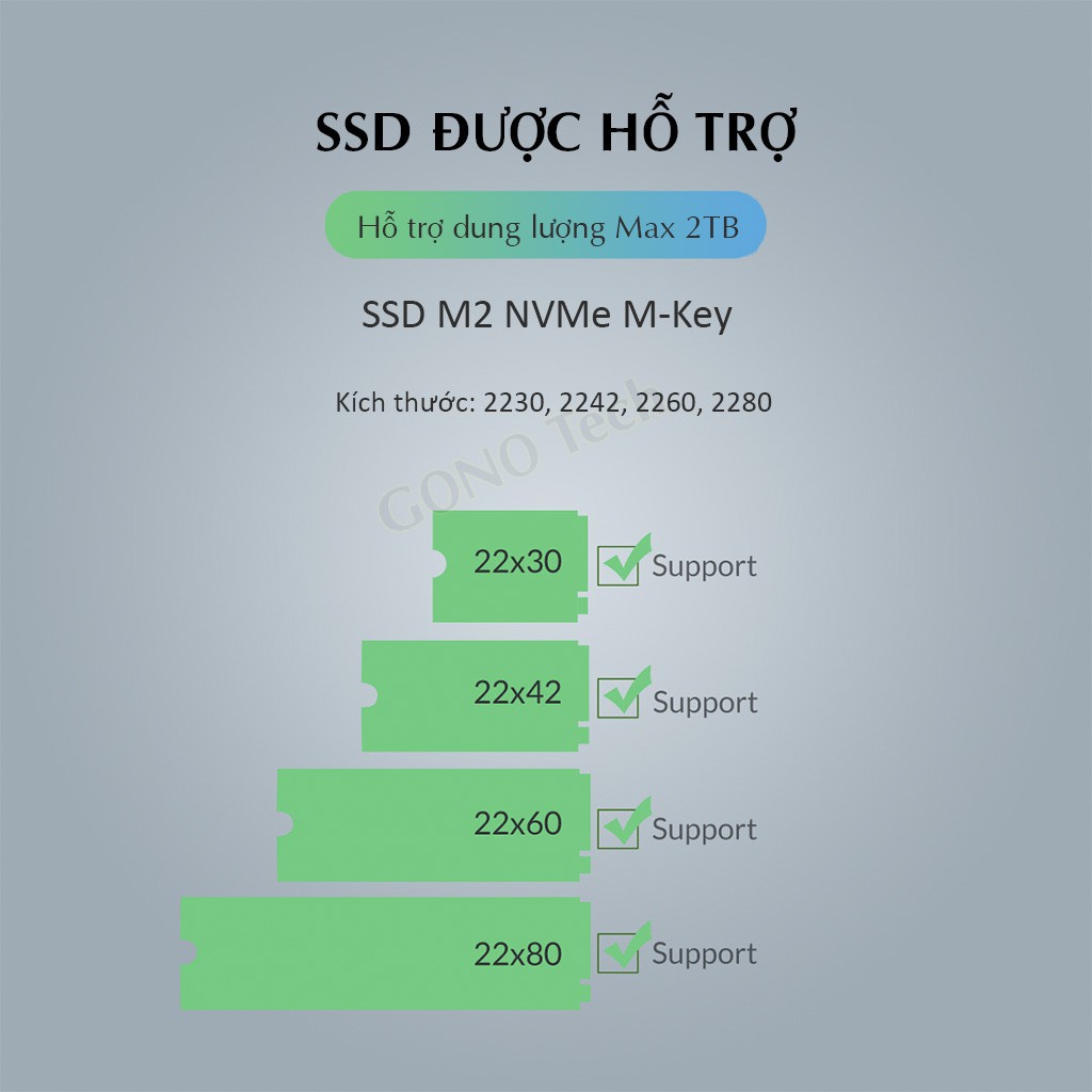 ✔ Box hỗ trợ SSD M2 kích thước 2230, 2242, 2260, 2280