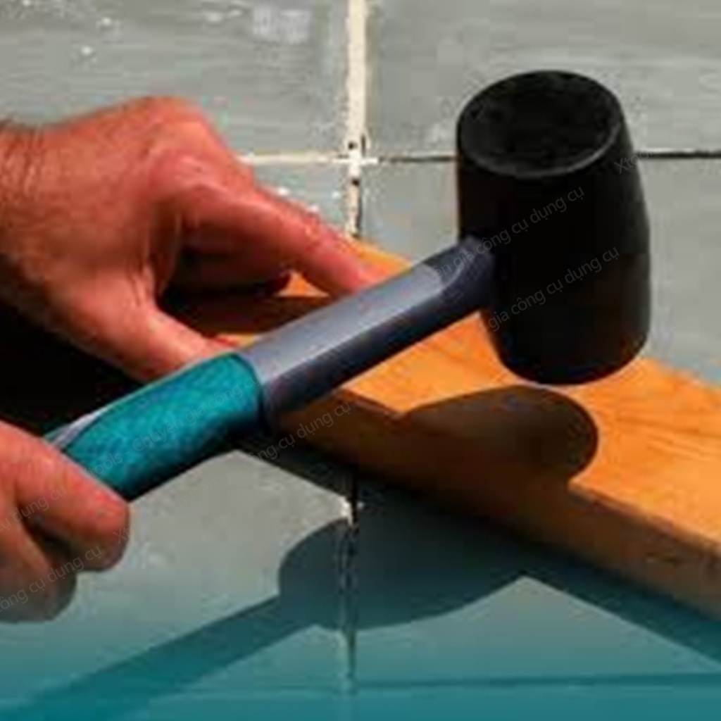 +Tay cầm được làm từ nhựa đúc nguyên khối cứng chắc chống gãy vỡ, cố định với đầu búa bằng khớp nối và keo siêu dính vĩnh cữu.