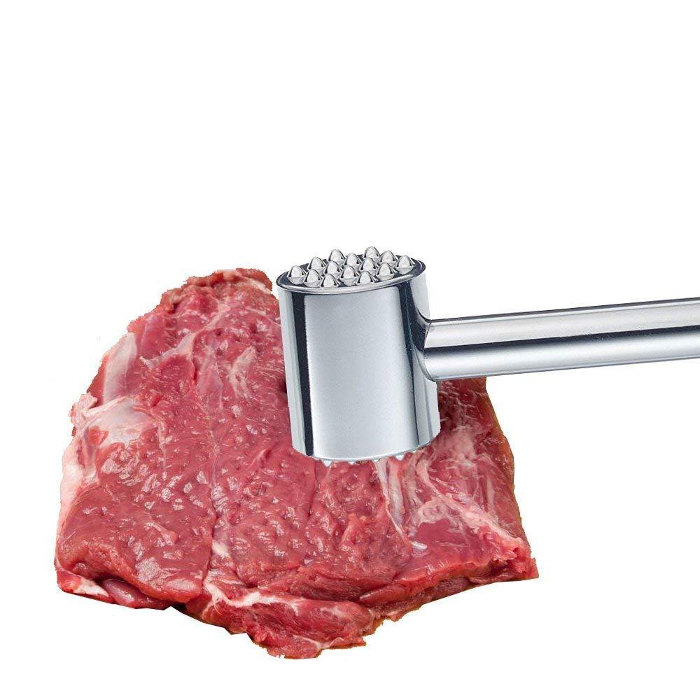 - Mặt phẳng của búa được sử dụng để san bằng tảng thịt và bề mặt có rãnh để làm nhám các miếng thịt