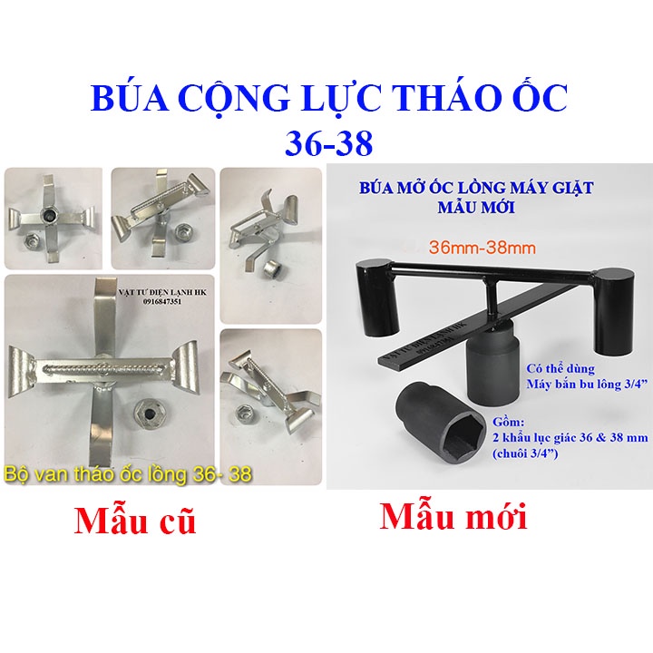 Búa mở ốc lồng máy giặt - Vam búa cộng lực tháo tán 36 - 38mm Đầu Tuýp Khẩu mở nồi xe ga 3/4