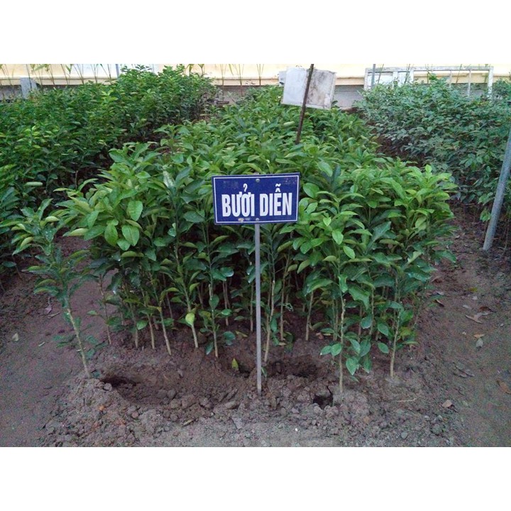 1 – Giới Thiệu:Cây Giống Bưởi Diễn là loại cây ăn quả có giá trị kinh tế cao. Một ha bưởi Diễn sau 5 năm tuổi có thể đạt năng suất từ 50-65 ngàn qủa/năm, đạt giá trị từ 700-900 triệu đồng. Bưởi Diễn là loại cây rễ nông thích hợp với các loại đất chắc như đất thịt nặng, đất đồi... đất mang tính kiềm. Giống cây bưởi diễn không chịu được nước nên cần tránh úng ngập. Bưởi Diễn có cuống nhỏ, quả tròn đều, không dài, căng vỏ, vỏ có màu vàng sẫm và cầm chắc tay, nặng từ 0,9 – 1kg. Khi bổ ra có tép vàng mượt, cùi mỏng, nhìn qua lớp vỏ lụa thấy màu óng vàng. Đặc biệt, hạt của bưởi Diễn rất nhỏ và săn hạt. ăn ngọt, đặc biệt có mùi thơm mát. Bưởi Diễn có thể để được từ 3 đến 4 tháng và càng để lâu, héo, ăn càng thơm, giòn, ngọt.