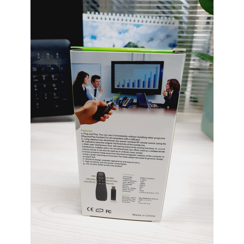 Sản phẩm Bút Chỉ Trình Chiếu Slide PowerPoint Laser 2.4G model R400 Bút Chỉ Máy Chiếu Nhạy, Độ Bền Cao- Hàng tốt Tặng kèm Pin là hàng mới nguyên tem, chất lượng cao được cửa hàng chúng tôi cam kết:- Cam kết sản phẩm mới chính hãng nguyên tem đúng như hình ảnh miêu tả