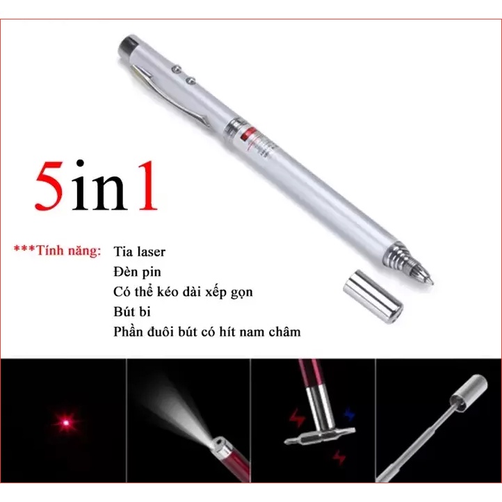 - Ngoài công dụng có thể viết được thì Đèn Laser Hình Cây Bút còn có 3 cách sử dụng khác là bạn có thể kéo dài đầu bút thành 1 cây thước dài giảng bài, có thể chiếu laser vào những điểm quan trọng cần làm rõ, hoặc khi gặp sự cố mất điện trong tối bạn có thể phát đèn pin trên bút để chiếu sáng. shopee.vn/grandstore