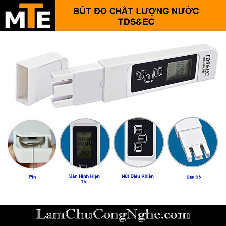 -Bút thử nước sạch TDS&ECDụng cụ kiểm chất lượng nước kỹ thuật số TDS&EC 0-9990 ppm và đo nhiệt độ nước là dụng cụ tiện ích giúp bạn hiểu rõ về đặt tính nguồn nước mình đang sử dụng và an tâm hơn. Bạn sẽ có ngay giải pháp lắp máy lọc nước để bảo vệ sức khỏe cho người thân mình kịp thời khi nguồn nước nhà mình chưa đạt tiêu chuẩn an toàn sức khỏe.