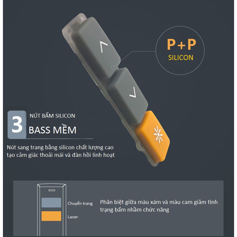 +1 nút điều chỉnh laser: con trỏ laser màu đỏ để giúp người xem tập trung hơn và cùng giúp người trình bày nắm rõ được quá trình diễn giải cuả mình