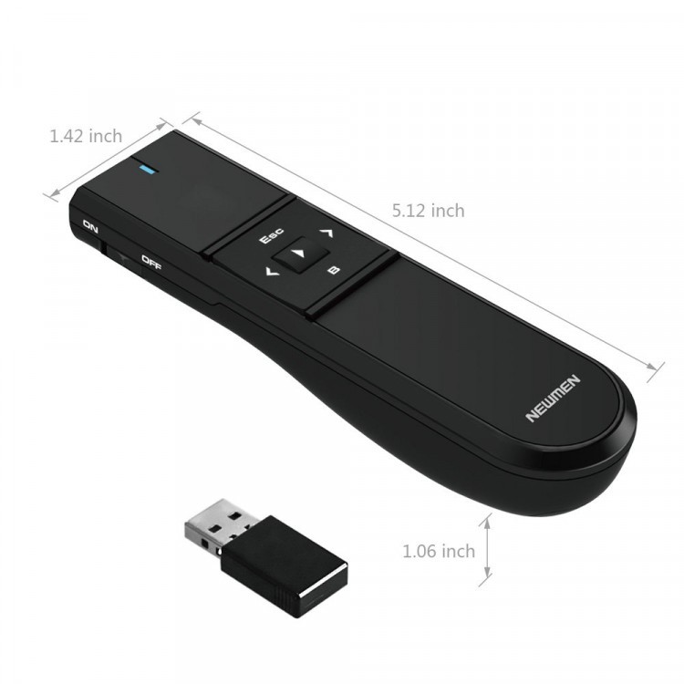 MÔ TẢ SẢN PHẨM Bút Trình Chiếu Laser Newmen P002Trình duyệt không dây: Sử dụng công nghệ không dây 2,4 GHz và kết nối USB 2.0.