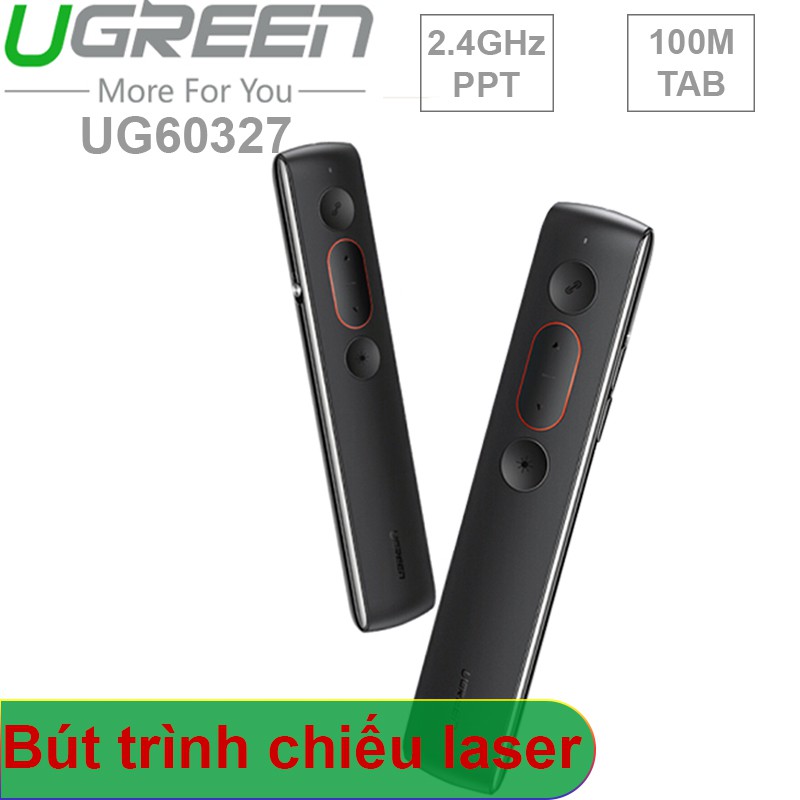 Bút Trình Chiếu Ugreen 60327, Điều Khiển Từ Xa 100 Mét, Dùng PIN AAABút trình chiếu laser không dây Ugreen 60327 là thiết bị dùng để điều khiển từ xa nội dung thuyết trình trên màn hình, máy chiếu phục vụ các nhu cầu giảng dạy, hội nghị... bạn có thể thoải mái di chuyển xung quanh trình bày và điều khiển bài thuyết trình thay vì bị giới hạn một chỗ gần máy tính.