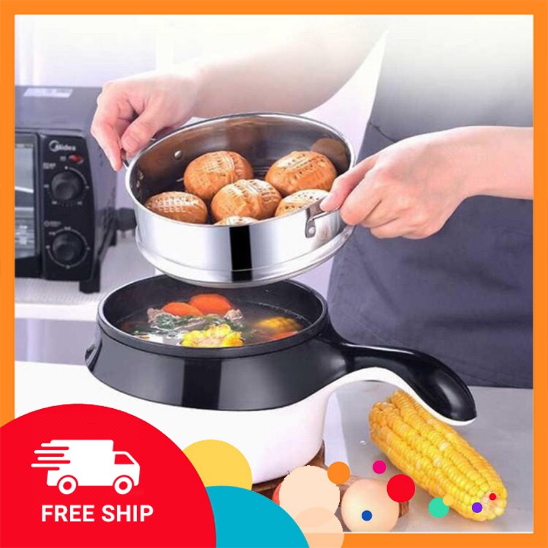 Ca Bếp Điện Đa Năng Mini Siêu Tốc 1.8L Nấu Mì Lẩu Chiên Hấp Tặng Kèm Lồng Hấp Siêu Tiện Lợi