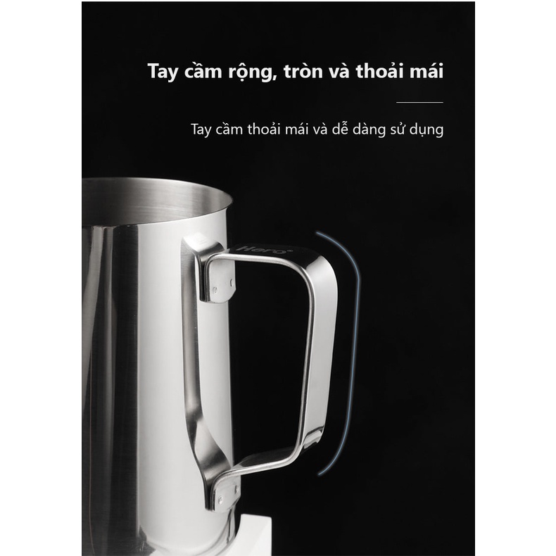 Trở thành barista tại nhà với ca đánh sữa Hero. Ca đánh sữa Hero được thiết kế tay cầm góc R phù hợp với nhiều vị trí cầm khác nhau. Thiết kế miệng rót hình mỏ đại bàng giúp chuyển hướng khi vẽ nhanh hơn, thích hợp để tạo các mẫu hình khác nhau. Thân cốc hình trụ bằng thép không gỉ, được đánh bóng cẩn thận, an toàn và chắc chắn.Giá ITGR