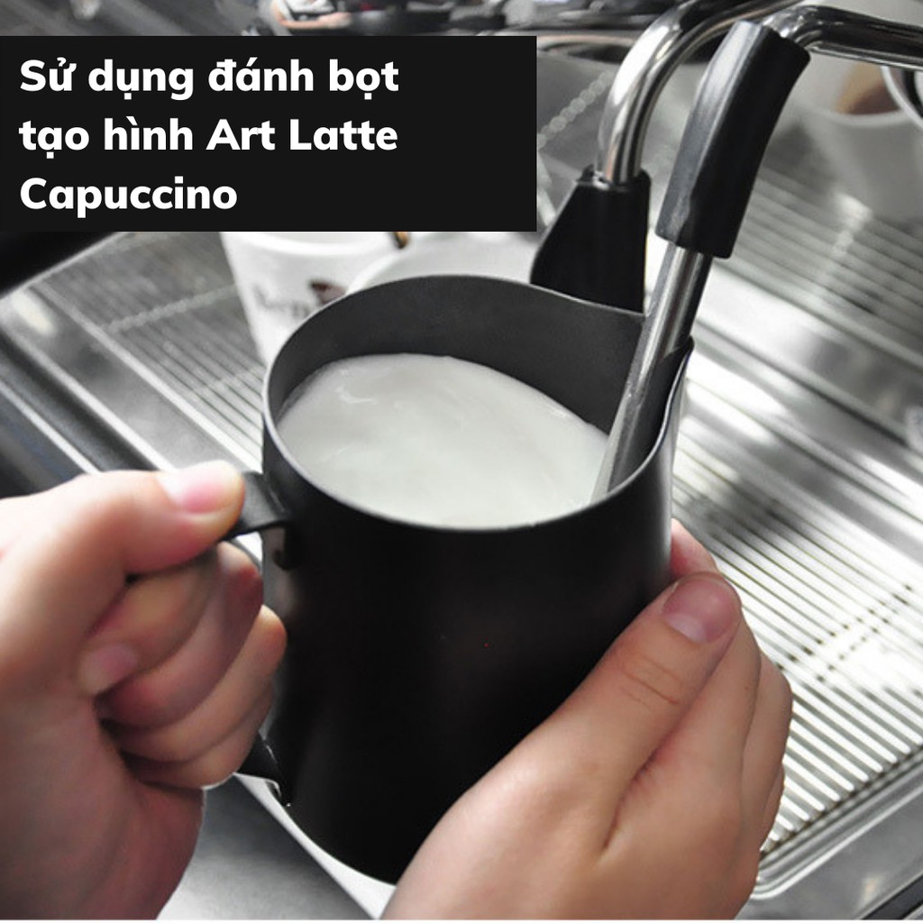 Giới thiệu Ca đánh sữa inox cao cấp dung tích 350-600ml pha cà phê Espresso đổ hình cappuccino nghệ thuật Art Latte đen nhám