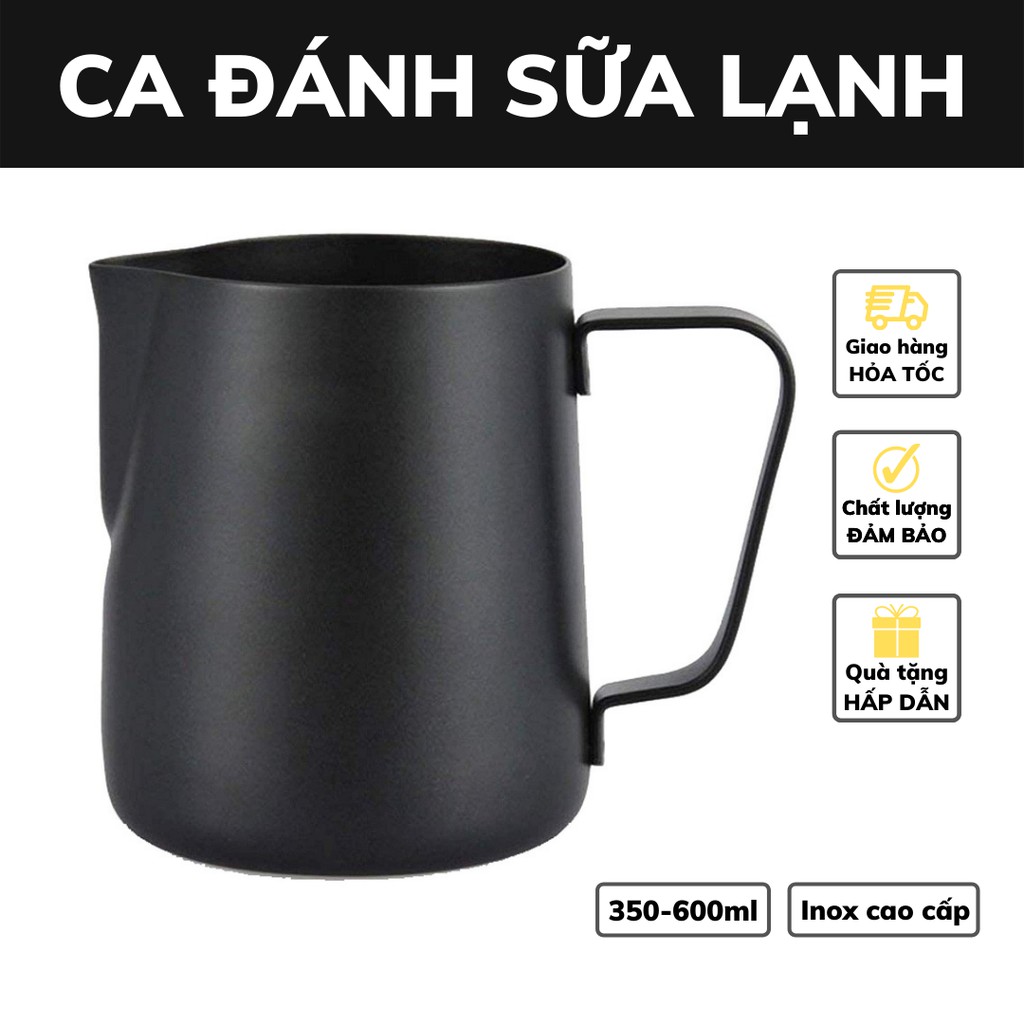 Ca đánh sữa inox cao cấp dung tích 350-600ml pha cà phê Espresso đổ hình cappuccino nghệ thuật Art Latte đen nhámChất liệu: Thép không gỉ sơn tĩnh điện.