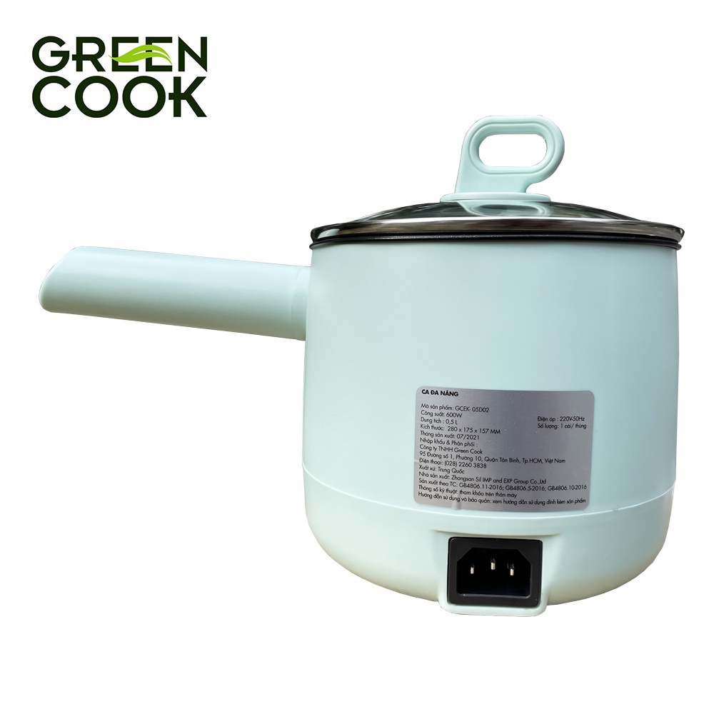 Ca điện đa năng chống dính Green Cook GCEK-05D02 600W 0.5L tiện lợi nấu mì, lẩu mini, đun nước, nấu cơmTHÔNG SỐ CHI TIẾT