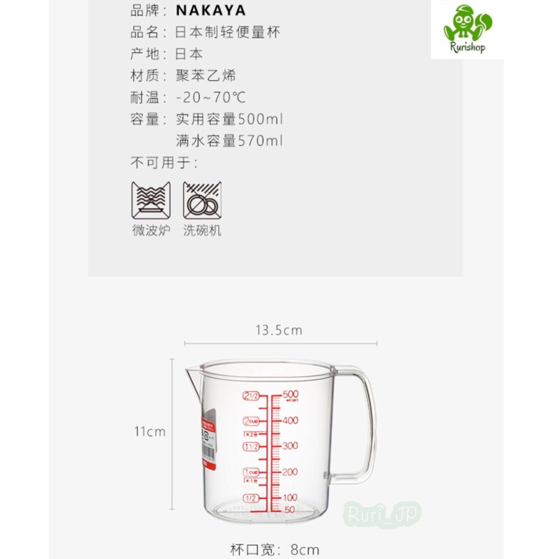 Giới thiệu Ca đong chia vạch làm bếp Nakaya Nhật Bản_nhựa trong suốt cao cấp 500ml