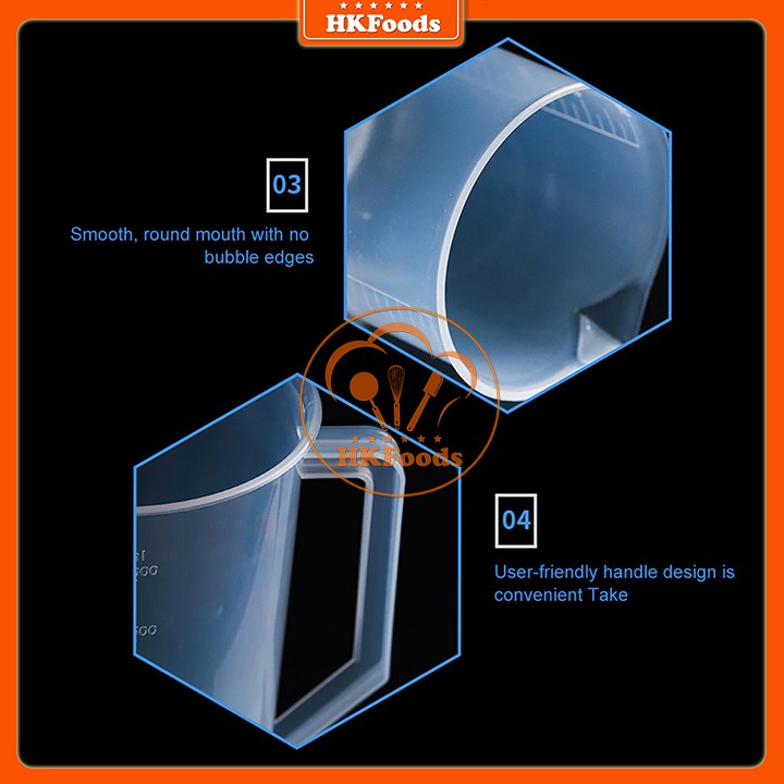 Ca đong nhựa được làm từ nhựa PP cao cấp, cứng cáp, trong suốt với vạch chia rõ ràng, giúp người dùng quan sát dễ dàng liều lượng dung dịch đong.Dung tích phù hợp với nhiều nhu cầu trong pha chế, làm bánh. Thiết kế tay cầm thuận tiện và một đầu rót rất tiện cho người sử dụng.