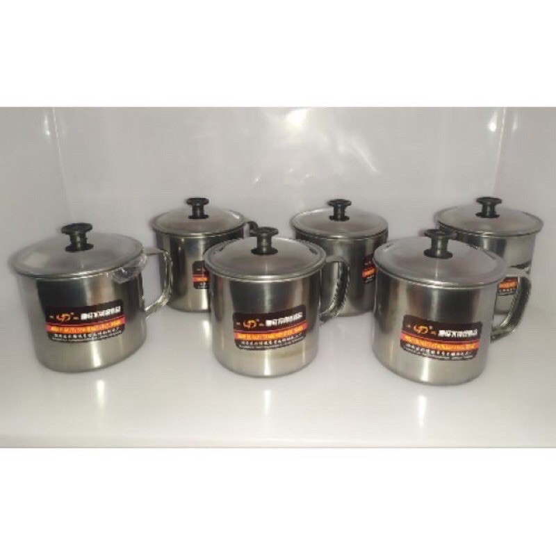 Ca inox 8cm có nắp, dùng để uống nước hoặc đựng canh trong suất ăn công nghiệp...Chất liệu inox 430