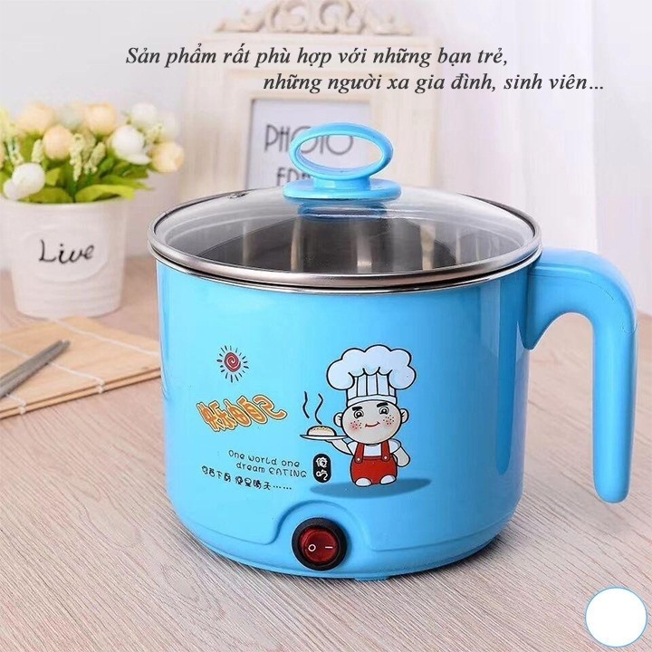 Ca nấu Mì Đa Năng Siêu Tốc, Nồi Lẩu Điện Mini 18cm Kèm Giá Hấp Trứng Thông Minh