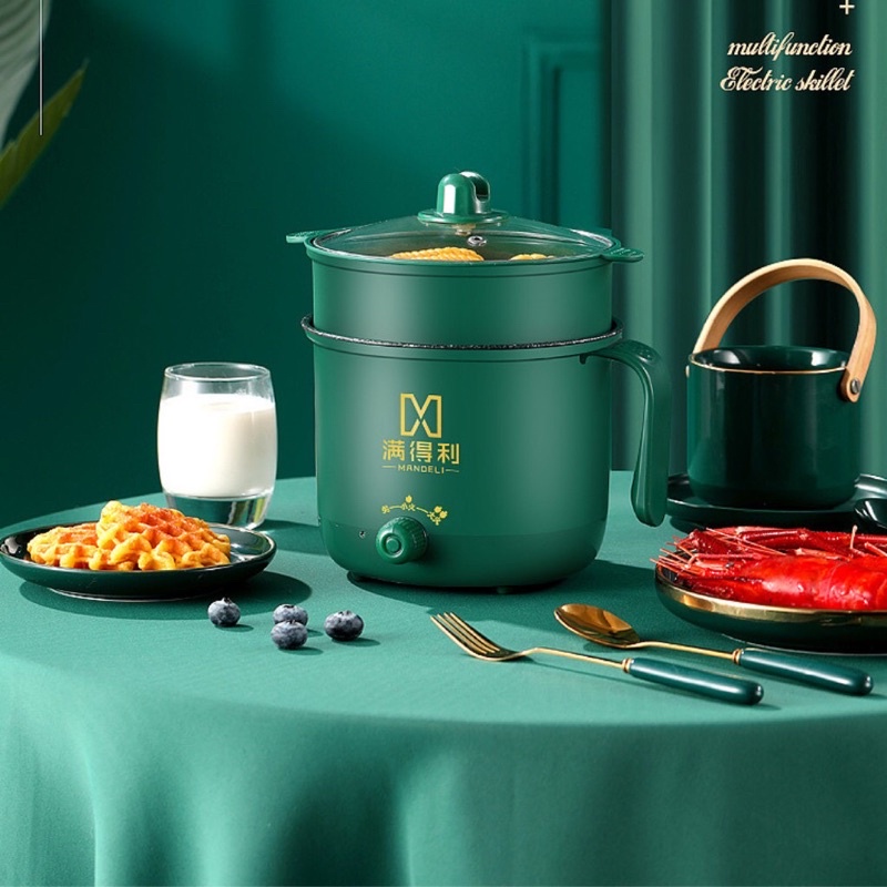 Ca Nấu Mì, Nấu Cơm Đa Năng Tiện Dụng Có Tay Cầm 1,8L - Nồi Lẩu Điện Mini Kèm Giá Hấp