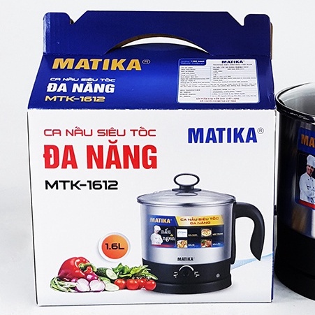 - Ca nấu siêu tốc đa năng Matika MTK-1612 (1.6L) nhỏ gọn có thể mang đi – nấu nước, mỳ, lẩu tiện dụng: