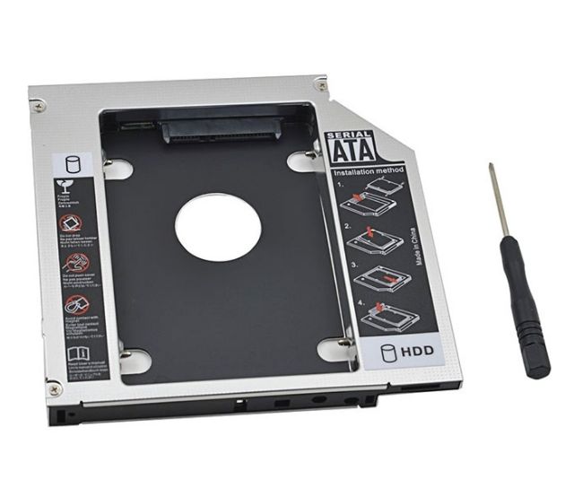 Caddy Bay chuyển đổi giúp bạn tận dụng vị trí ổ đĩa quang lắp thêm HDD 2.5 thông qua nó, giải pháp tận dụng lại ổ cứng cũ khi nâng cấp SSD cho Laptop, Macbook.