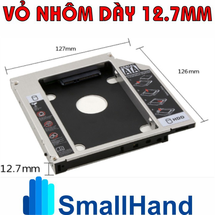 Giới thiệu ⚡ Caddy Bay HDD SSD SATA 3 9.5mm/12.7mm - Khay ổ cứng thay thế ổ DVD Vỏ Nhôm