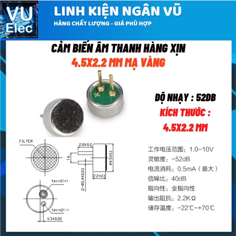 - Độ nhạy -44 ±2 dB