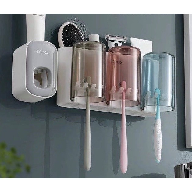 Nhà cửa & Đời sống > Đồ dùng phòng tắm > Kệ đựng bàn chải, kệ nhả kem đánh răng || Bộ cắm chải kèm nhả kem Ecoco cao cấp sang trọng 3 cốc trong suốtCòn hàng