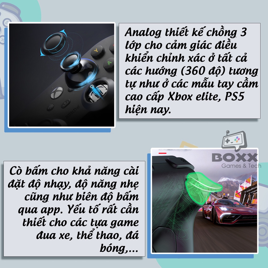 Nếu đã quá quen với những chiếc tay cầm Xbox 360, Xbox one S, Xbox Series X, PS4, PS5 với mức giá khá chát và giới hạn khả năng tương thích, thì đã đến lúc bạn nên chọn Pro 2 bản có dây này ạ.Được nâng cấp từ phiên bản SN30 Pro + nay Pro 2 bản có dây ( Wired Version ) được cải tiến và trang bị thêm được những tính năng chưa từng có.