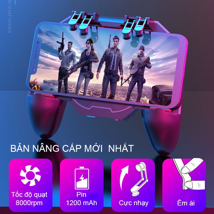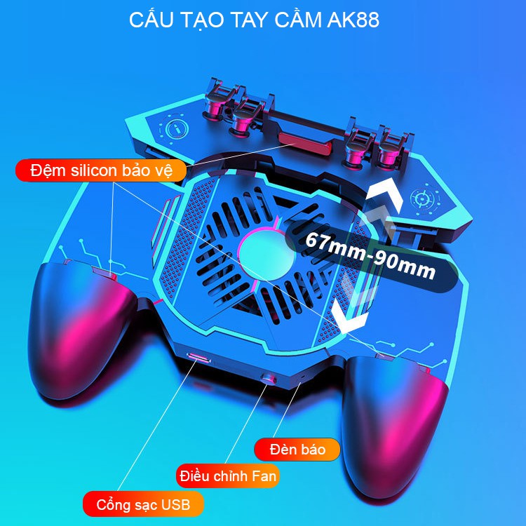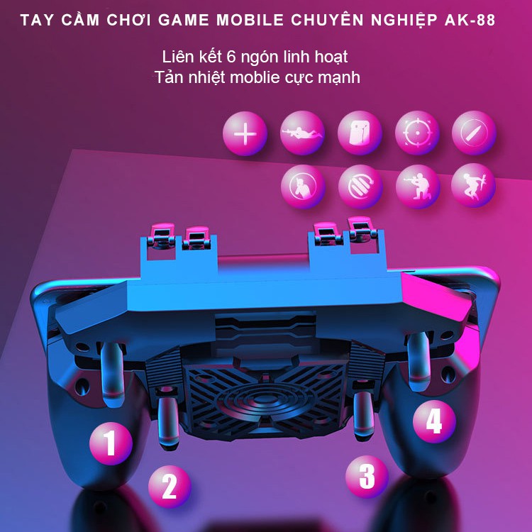 Tay cầm chơi game điện thoại SIDOTECH Memo AK88 có quạt tản nhiệt bắn PUBG / FREE FIRE / ROS kết nối 6 ngón linh hoạt