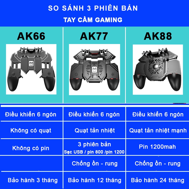 Tay cầm chơi game điện thoại SIDOTECH Memo AK77 hỗ trợ 6 ngón bắn PUBG / FREE FIRE / ROS phù hợp điện thoại smartphone