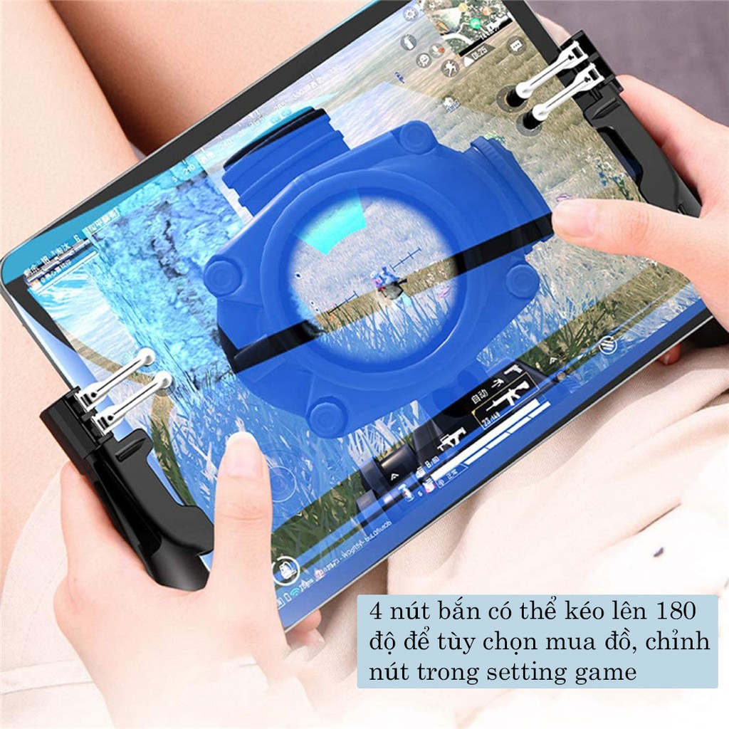 - 4 nút bắn có thể kéo lên 180 độ để tùy chọn mua đồ, chỉnh nút trong setting game