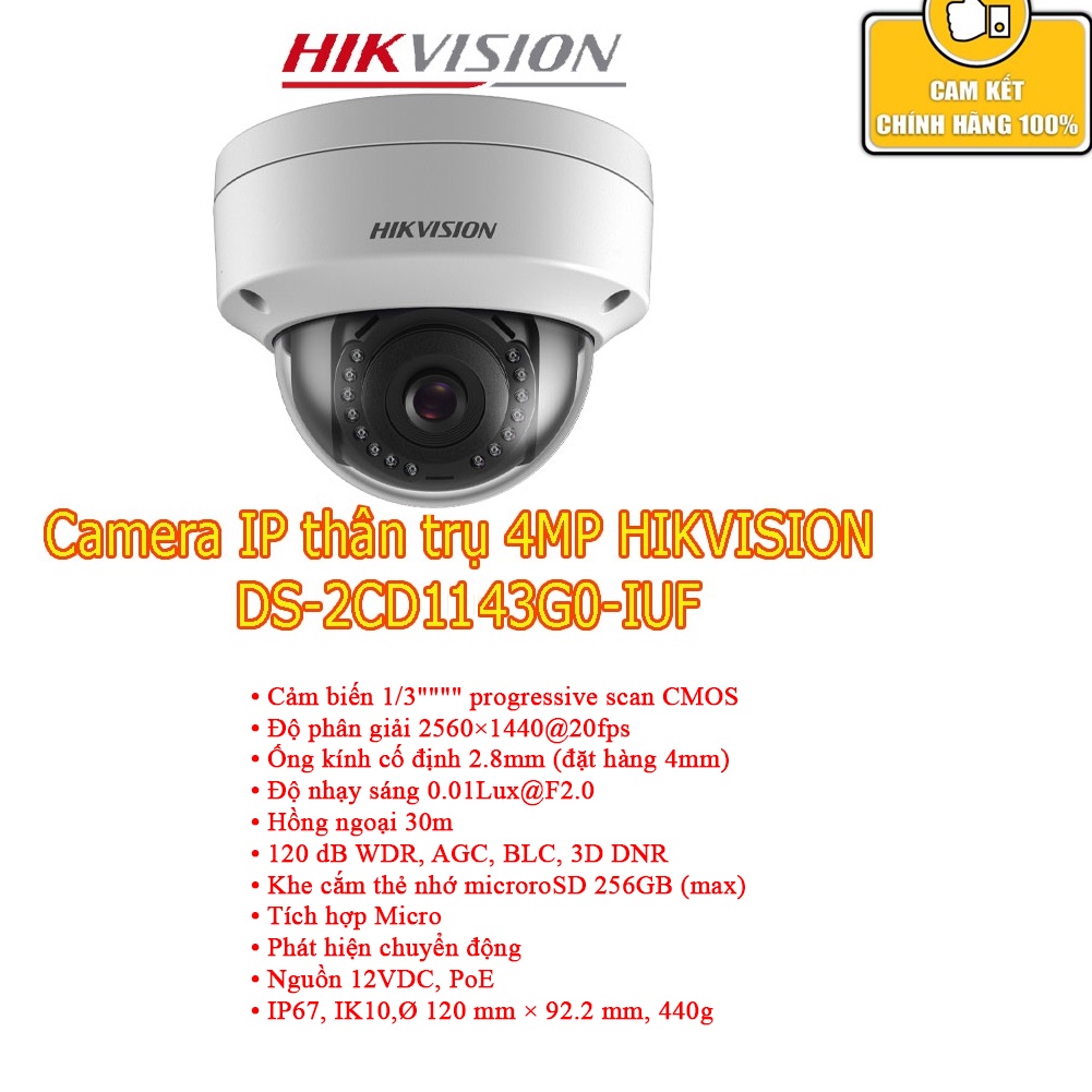 - Tiêu chuẩn IK10 với model DS-2CD1143G0-IUF