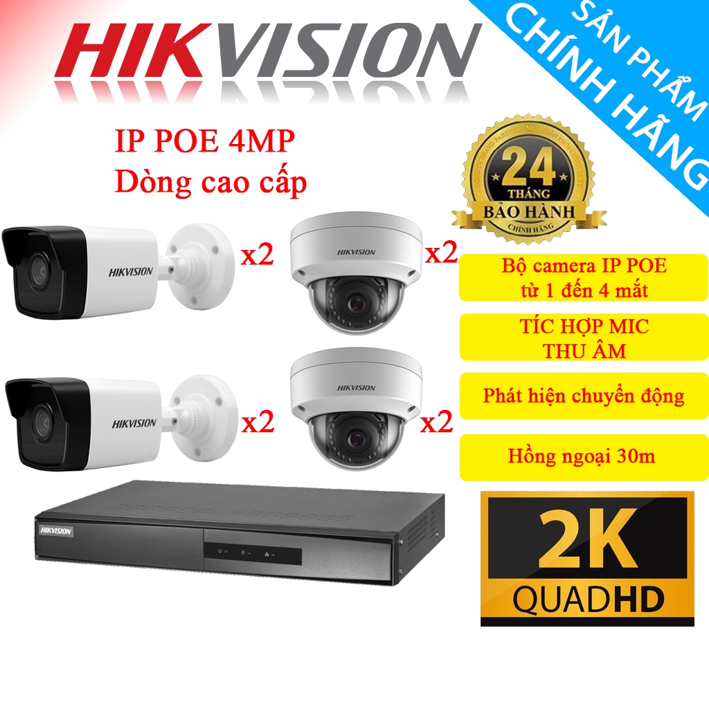 Bộ Camera 5/6/7/8 Mắt IP POE HIKVISION 4.0MP [ TÍC HỢP MIC ] - Hàng Chính Hãng, Bảo Hành 24 Tháng