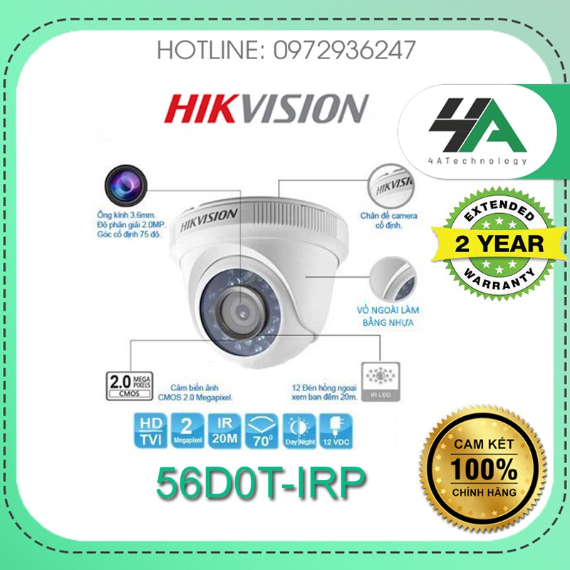 Camera analog TVI HikVision 2MP 1080P DS-2CE56D0T-IRP (chính hãng Hikvision Việt Nam)