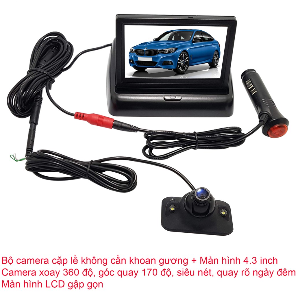 Camera cặp lề không cần khoan gương và màn hình LCD 4.3inch gập gọn